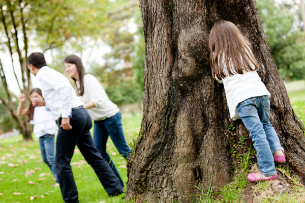 Happy family playing hide and seek at the park